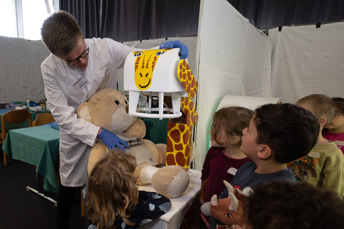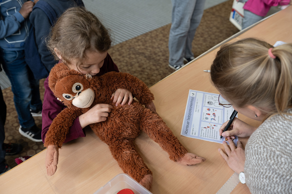 (umg) Volles Haus! Das Teddybär-Krankenhaus öffnete zum 19. Mal seine Türen. Drei Tage lang untersuchten und behandelten etwa 40 Teddy-Docs – Medizin- und Zahnmedizinstudierende sowie Auszubildende der Gesundheitsberufe der UMG. Angemeldet hatten sich rund 900 Kuschelfreunde von Kindern aus den Kitas und Kindergärten rund um Göttingen sowie aus der Klinik für Kinder- und Jugendmedizin und der Kinderherzklinik der Universitätsmedizin Göttingen (UMG).