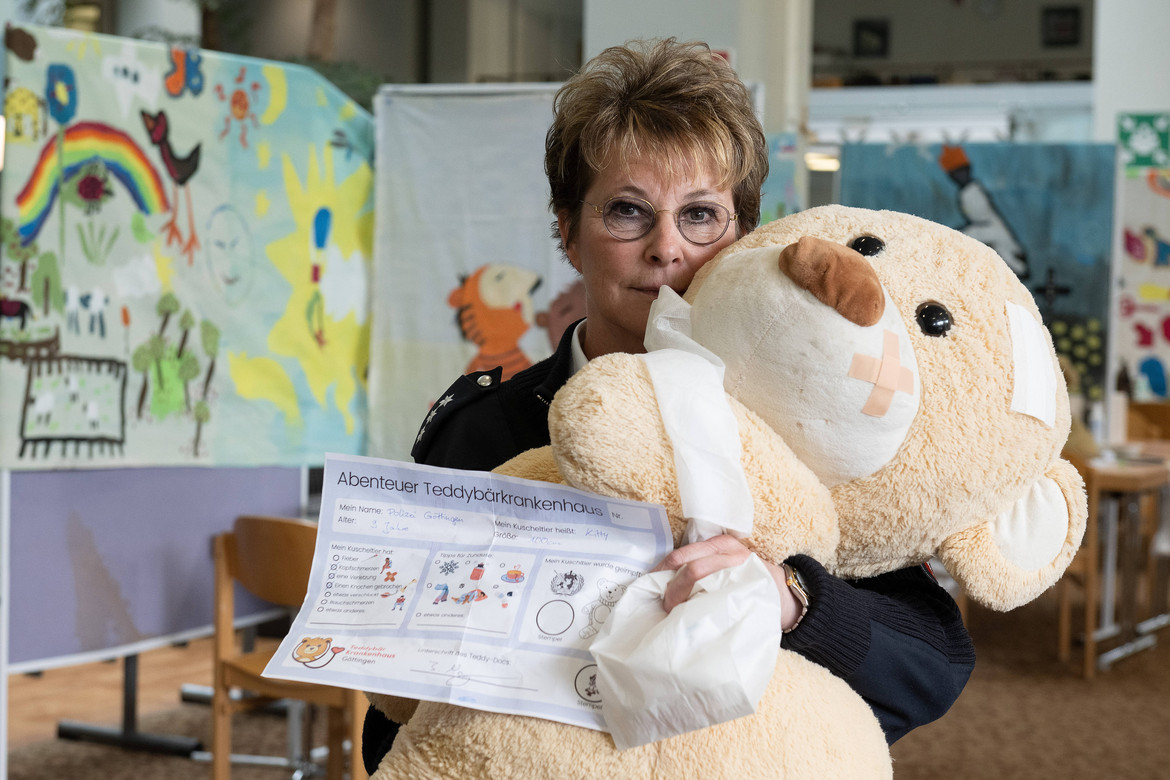 Rund 900 Kuscheltiere im Teddybär-Krankenhaus am Universitätsklinikum Göttingen versorgt. Routineuntersuchung für Polizei-Teddys.